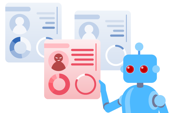 AIを用い、悪質ユーザーの行動特性・特徴など多岐にわたる情報のデータ分析をしています。