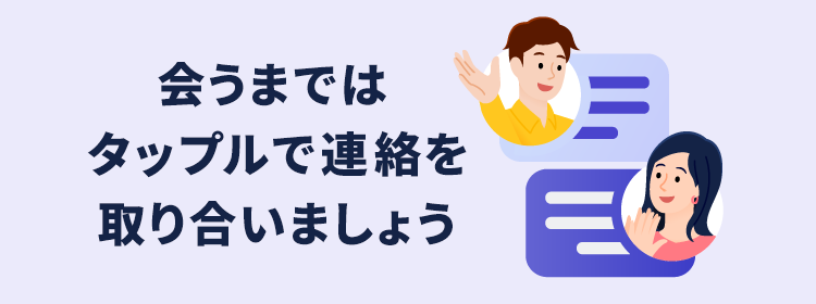 サービス内での連絡先の聞き出し・交換を禁止しています。個人の連絡先を教えると、トラブルに巻き込まれてしまったり、危険な目に遭う可能性があります。実際に会うまでは、タップルのメッセージでやりとりをしましょう。メッセージの他、通話やビデオチャットをすることもできます。